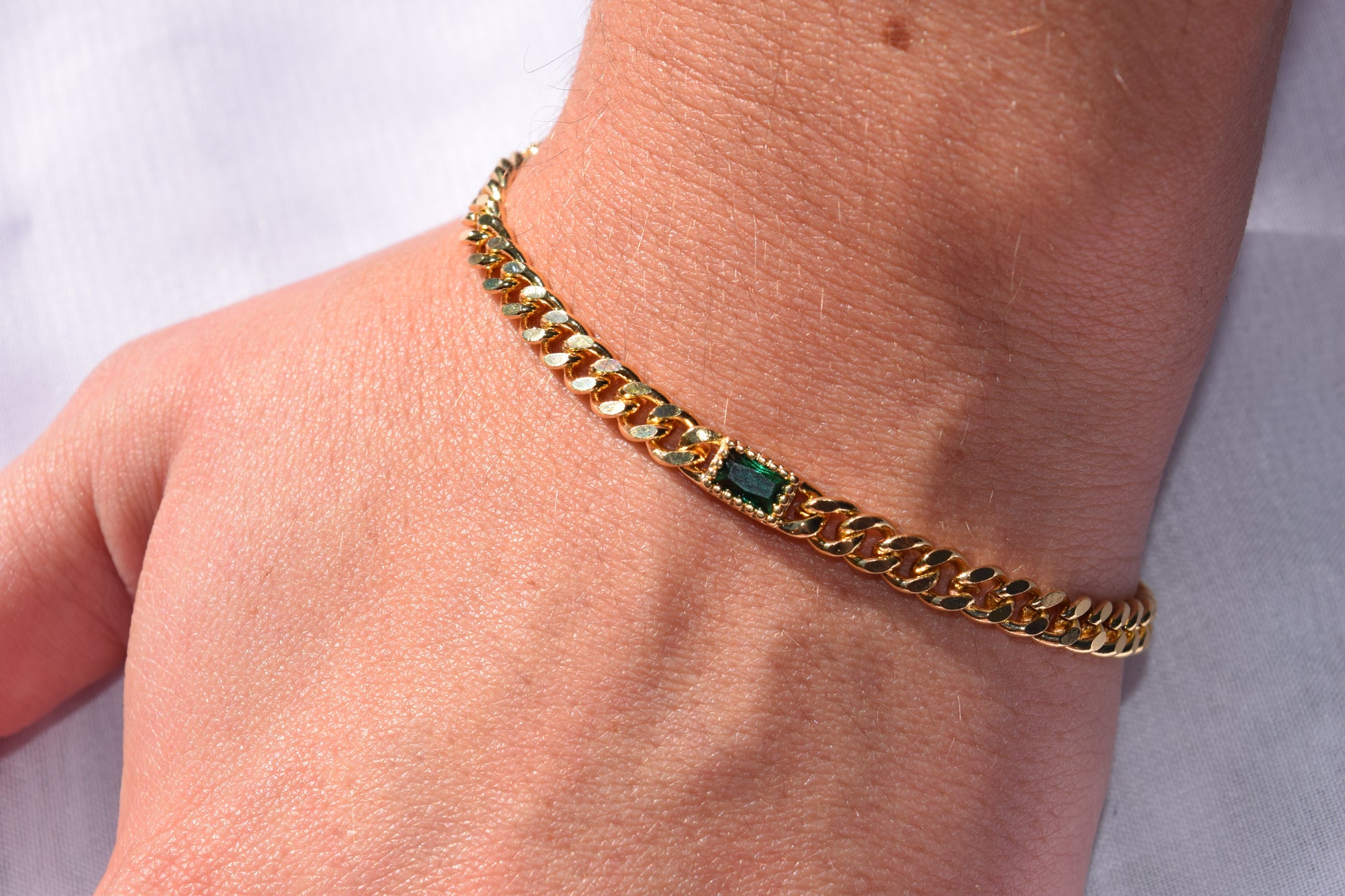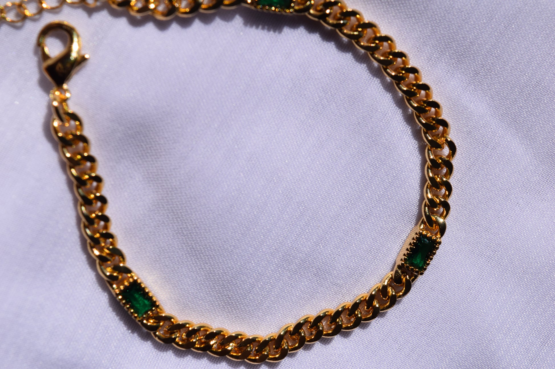 Elena Emerald Cuban Bracelet (18K Gold Filled)